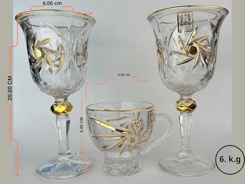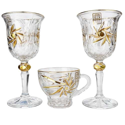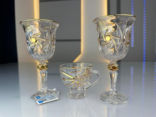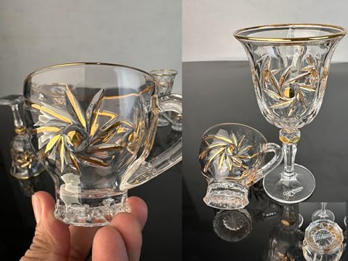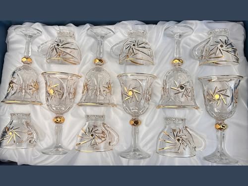 Generic - طقم كاسات وأكواب مروحة كريستال بوهيمي بماء الذهب – 12 قطعة – تصميم فاخر أنيق