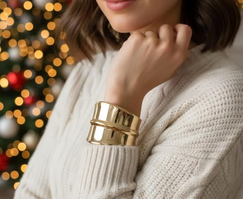 Generic - سوار ذهبي عريض قابل للتعديل، تصميم عصري أنيق، معدن لامع