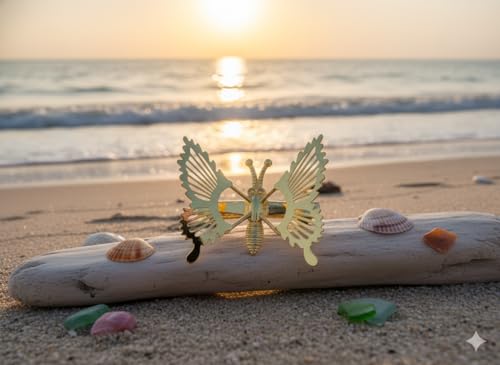 - شكل فراشة كبيرة وفنية: تصميم مجوف ومتقن بخطوط أنيقة مطلية بالذهب، مثالي للفت الانتباه.