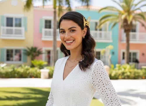 Generic - توكة شعر ذهبي بتصميم فراشة هزازة | توكة شعر كبيرة أنيقة ومجوفة | من الاستانلس ستيل المقاوم للصدأ | إكسسوار شعر نسائي عصري ومميز | ثبات قوي