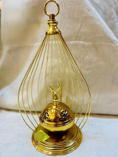 Generic - مبخرة قفص ذهبية، مبخرة معدنية بتصميم قفص، ديكور إسلامي تقليدي مع هلال