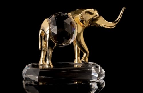 - تصميم فاخر: تمثال فيل مصنوع من معدن ذهبي اللون مع جسم من الكريستال الشفاف المصقول، يضيف لمسة من الأناقة والفخامة لأي مساحة
