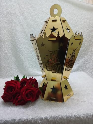 Generic - فانوس خشبي سداسي لون ذهبي بوحدة اضاءة وصوت باسم (دمايانه)