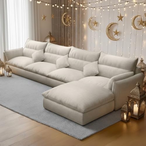 Generic - ركنة من جولدن لايف قماش كتان بتصميم حرف L، أوف وايت ، خشب زان، إسفنج سوفت، قطعتين، 300 سم عرض، شيزلونج 200 سم
