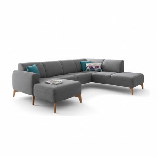 Generic - ركنة من جولدن لايف على شكل حرف U، رمادي غامق ، قماش كتان كويا، خشب زان، 280x180x80 سم