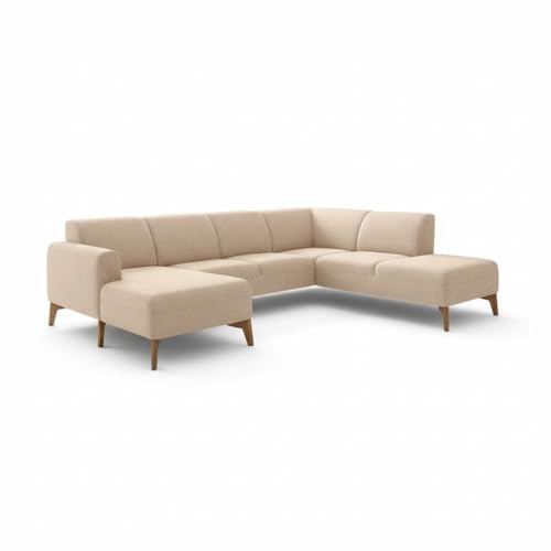 Generic - ركنة مودرن بتصميم حرف U من جولدن لايف ، بيج، قماش كتان كويا، 3 قطع مع شيزلونج، 280x180x80 سم، خشب زان