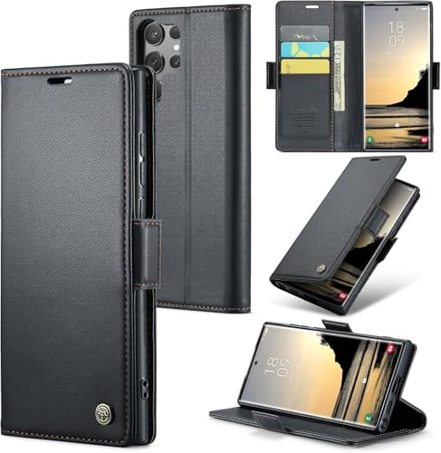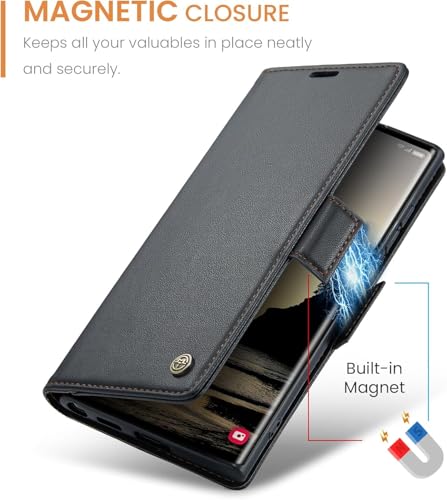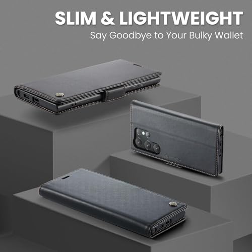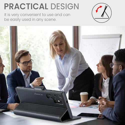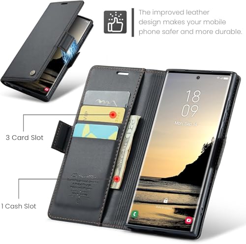 GOLDEN MASK - جراب موبايل قابل للطي من جلد صناعي مضاد لبصمات الأصابع من جولدن ماسك متوافق مع سامسونج جالاكسي S25 الترا ومزود بأماكن لوضع الكروت، 023 (أسود)