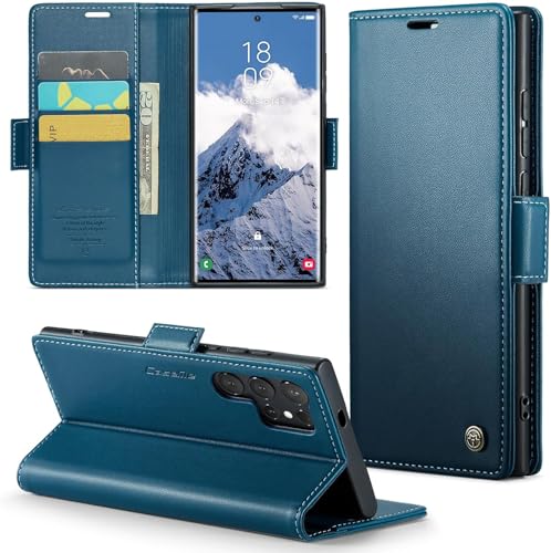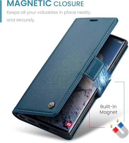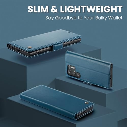 GOLDEN MASK - جراب موبايل قابل للطي من جلد صناعي مضاد لبصمات الأصابع من جولدن ماسك متوافق مع سامسونج جالاكسي S25 الترا ومزود بأماكن لوضع الكروت، 023 (أزرق)