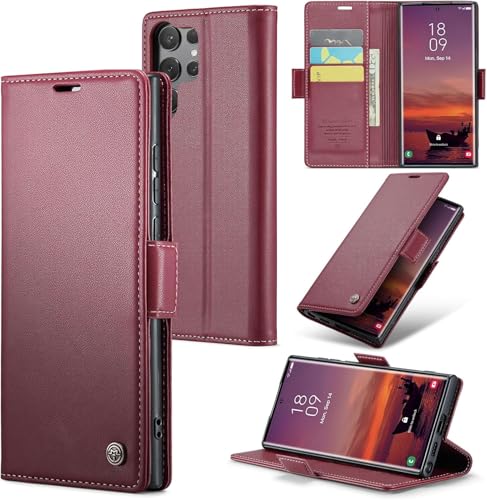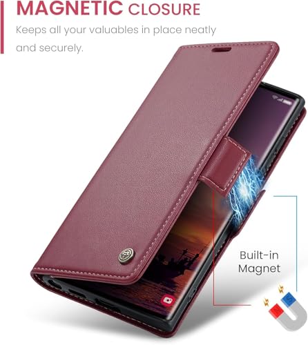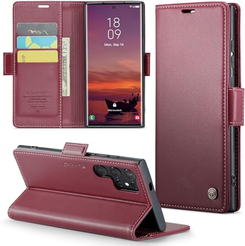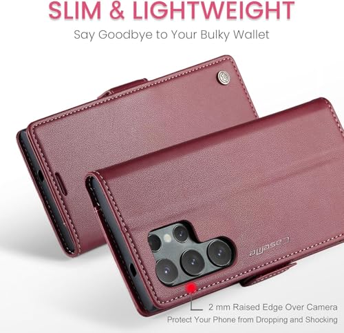 GOLDEN MASK - جراب قابل للطي من الجلد الصناعي مضاد لبصمات الأصابع مع فتحة للبطاقات من جولدن ماسك، متوافق مع سامسونج جالاكسي S25 الترا، أحمر، 023
