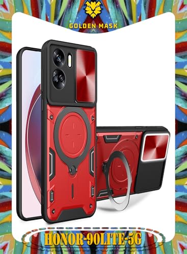 GOLDEN MASK - جراب درع حماية مسلح لعدسة الكاميرا من جولدن ماسك لموبايل هونر 90 لايت مدمجة 360 درجة لون أحمر حافظة بسيطة بلاستيك