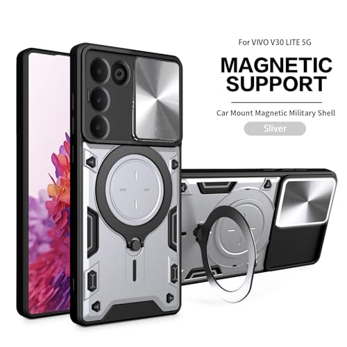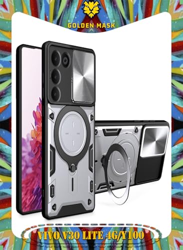 GOLDEN MASK - جراب حماية مدرع مع غطاء لحماية الكاميرا لموبايل فيفو V30 لايت 4G/Y100 من جولدن ماسك، مدمج 360 درجة، فضي، بلاستيك