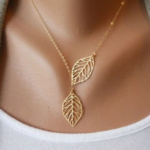 Generic - سلسلة معدنية ذهبية للنساء، قلادة انيقة على شكل ورقة شجر رقيقة