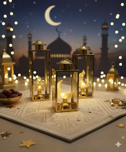- تصميم أنيق: فوانيس بإطار معدني ذهبي لامع بتصميم عصري يجمع بين الأصالة والحداثة لتزيين المنزل في شهر رمضان