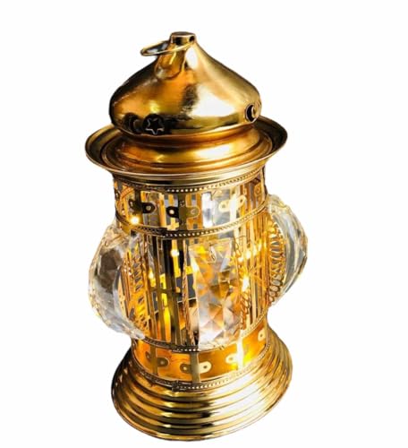 Generic - فانوس معدني ذهبي مرصع بالكريستال لمصباح رمضان للديكور المنزلي والهدايا مع اضواء