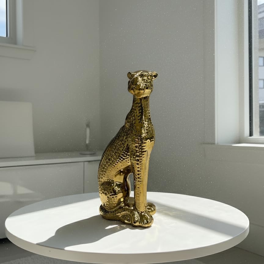 Generic - منحوتة النمر الذهبي، ارتفاع 25 سم، قطعة زخرفية أنيقة وقوية تجسد أناقة النمر بشكل بسيط