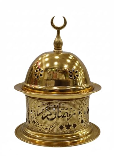 Generic - مبخرة رمضان الذهبية مع قبة وهلال، تصميم إسلامي منقوش، معدنية نحاسي، ديكور رمضاني،مضيئ