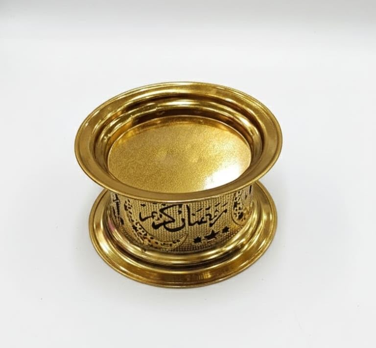 - قبة مزخرفة مع هلال: تأتي المبخرة بقبة علوية مزخرفة بفتحات على شكل نجوم لتوزيع البخور، ومتوجة بهلال إسلامي تقليدي أنيق