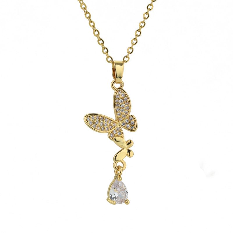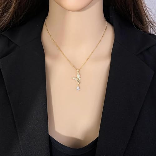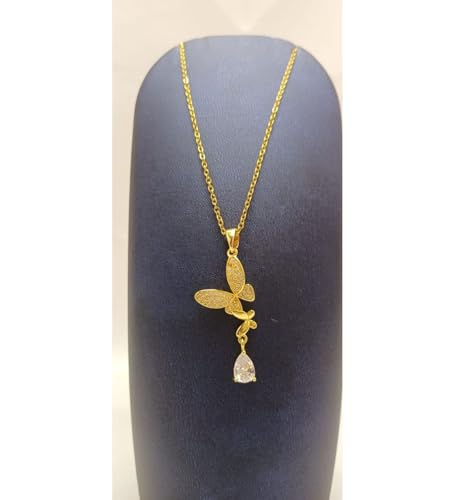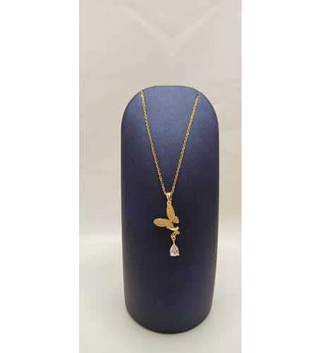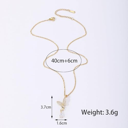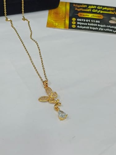 Generic - عقد ذهبي من الستانلس ستيل مع دلاية رقيقة على شكل ورقة شجر وحلية حجر شفاف للنمط اليومي والمناسبات الانيقة، مجوهرات خفيفة الوزن