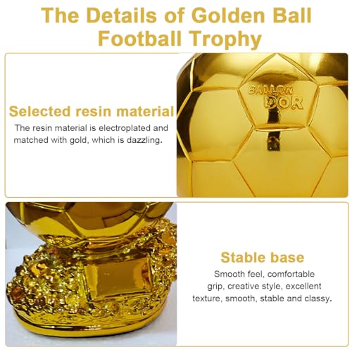- 【سهل الصيانة وطول العمر】كوب كرة القدم الذهبي مصمم لصيانة خالية من المتاعب، ببساطة امسحه بقطعة قماش ناعمة للحفاظ على لمعانه اللامع. كأس العالم لكرة القدم ناعم ورقيق، كما أن الجائزة التذكارية المصنوعة من الراتنج لمشجعي كرة القدم مريحة مما يضمن بقائها جذابة لسنوات.
