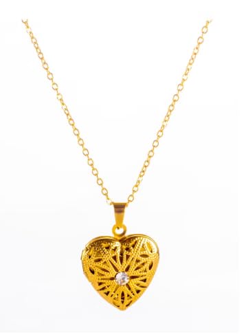 Generic - عقد بقلادة على شكل قلب من الزركونيا الذهبي من الستانلس ستيل