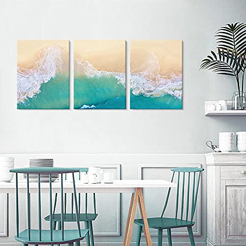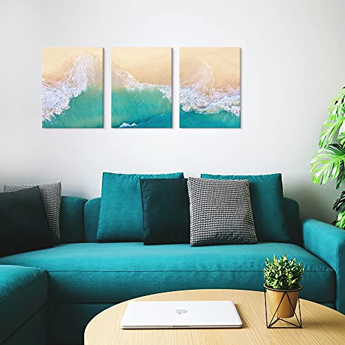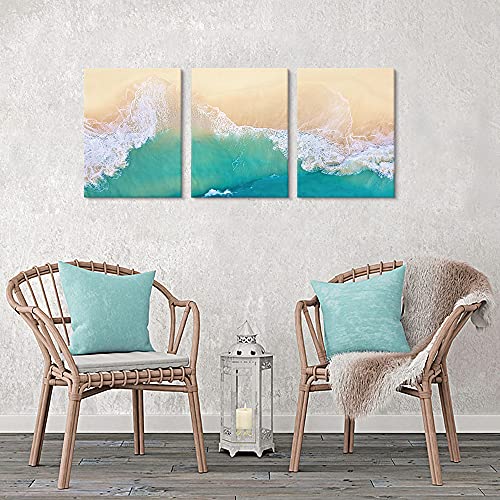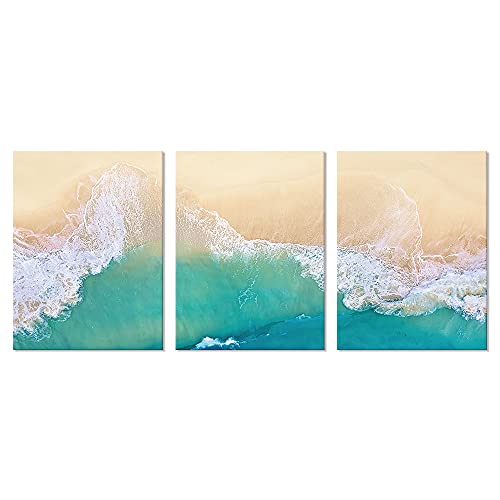 Goldfoilart - لوحات جدارية من جولدفويل آرت، لوحات قماش لغرفة المعيشة والنوم، تصميم أمواج البحر باللون الأزرق، مقاس 30.48 × 40.64 سم، مجموعة من 3 قطع