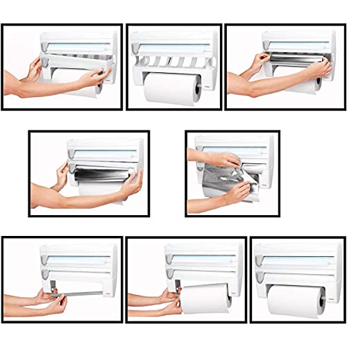 - يجعل موزع المناديل الورقية الثلاثي مطبخك أكثر عملية لأنه يحمل ورق المناديل وفويل الألومنيوم ومستلزمات المطبخ الأخرى باستخدام أداة واحدة فعالة فقط. بكرة المناديل الورقية غير مرفقة.