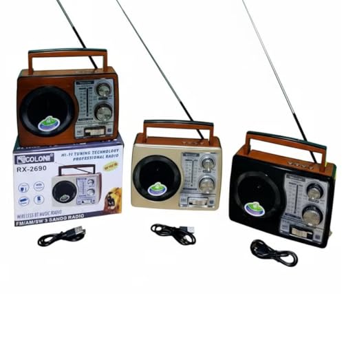 GOLON - راديو ومكبر صوت طراز RX-2690 ب3 نطاقات (ايه ام-اف ام- اس دابليو) يدعم البلوتوث وUSB وبطاقة تي اف ومدخل AUX وتقنية هاي فاي ومدخل تيار مستمر وبطارية قابلة لإعادة الشحن من جولون، أسود