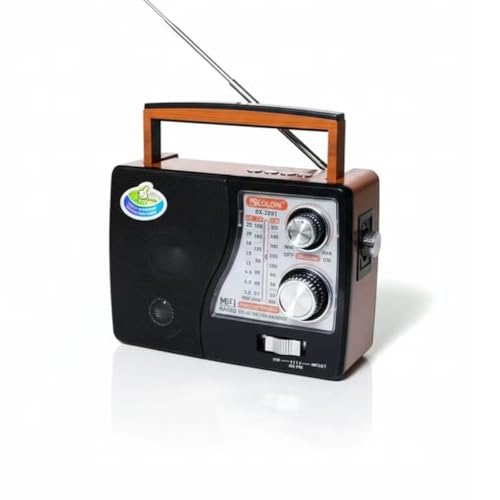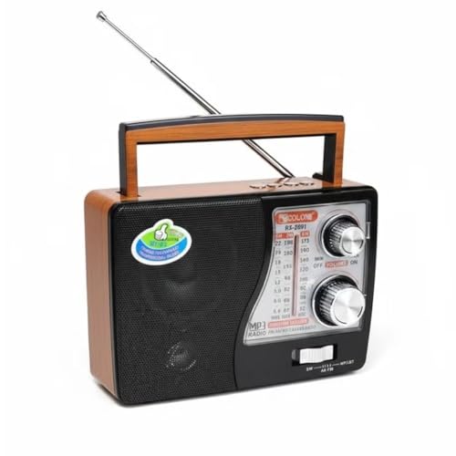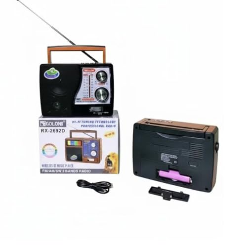 GOLON - راديو خشبي RX-2691 أنيق 3 نطاقات (ايه ام - اف ام - اس دبليو) يدعم البلوتوث وUSB وبطاقة تي اف مع مدخل شحن تيار مستمر وبطارية قابلة لإعادة الشحن، (أسود) من جولون