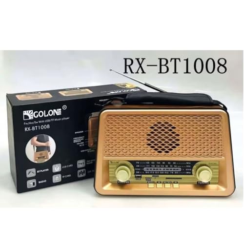 GOLON - راديو خشب RX-BT1008 لاسلكي، يدعم 3 موجات (ايه ام واس دبليو وراديو اف ام) وبلوتوث، مع منفذ USB وبطاقة تي اف وتقنية ترو وايرلس ستريو، مع مدخل شحن تيار متردد وبطارية قابلة لإعادة الشحن من جولون