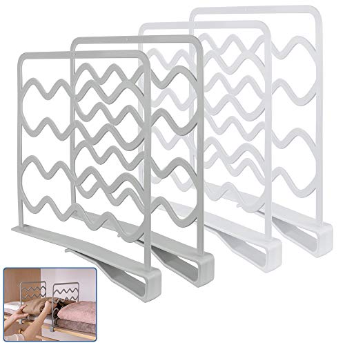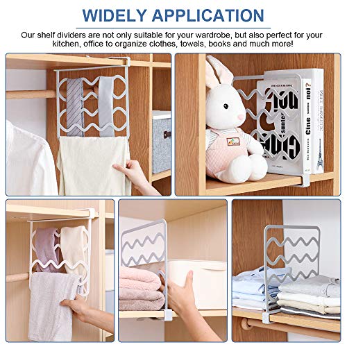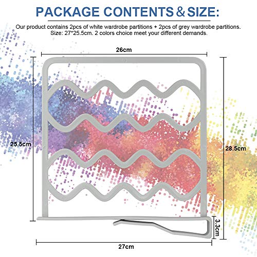 - مجموعة فواصل من 4 أرفف: سوف تحصل على اثنين من فواصل خزانة الملابس باللونين الأبيض والرمادي لتلبية رغباتك بألوان مختلفة. مقاس نظام الرف 27 × 25.5 سم (بما في ذلك طول جزء المشبك)، والذي يمكن تركيبه بسهولة في معظم الخزانات أو الخزائن.