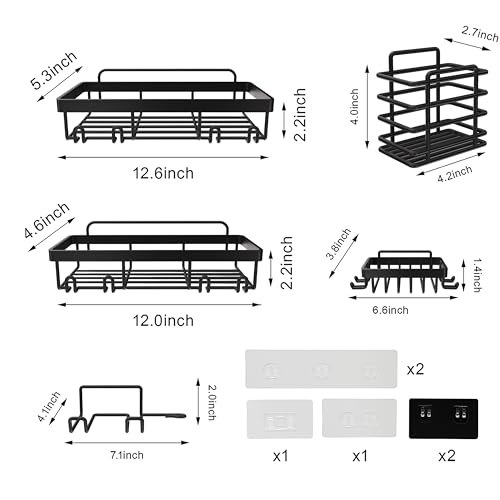 - 【5 عبوات من منظمات الحمام والتخزين】يتضمن منظم الحمام علبتي استحمام، حامل صابون واحد، حامل فرشاة أسنان واحد، حامل مجفف شعر واحد، منظمات المطبخ والتخزين جميعها مجهزة بمادة لاصقة. يمكن لمنظم الحمام ذو السعة الكبيرة أن يوفر مساحة منزلك ويجعل الحياة أسهل. مثالي كديكور للحمام وديكور المنزل واكسسوارات وأرفف الحمام وأدوات المطبخ ومستلزمات الشقة ورفوف الدش ومنظم الحمام.