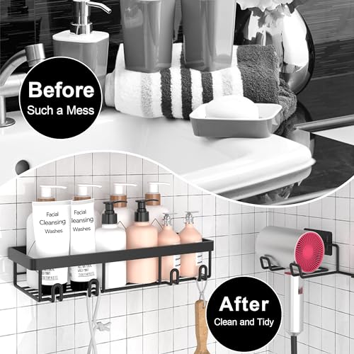 - 【منظم دش من الفولاذ المقاوم للصدأ】رف الدش المعلق مصنوع من الفولاذ المقاوم للصدأ، السطح مطلي باللون الأسود، متين ومقاوم للصدأ ومقاوم للماء والخدوش. رف الحمام بتصميم مجوف، لذلك من السهل تصريفه بعد الاستحمام بسرعة وسلاسة، مما يجعله سهل التنظيف.