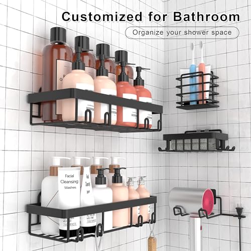 GOMALL - منظم حمام بسعة كبيرة، منظم استحمام وتخزين، أرفف حمام من الفولاذ المقاوم للصدأ، أرفف للحمام بدون حفر، أساسيات الشقة والمنزل من جومال، عبوة من 5 قطع