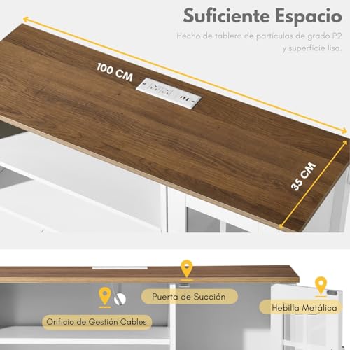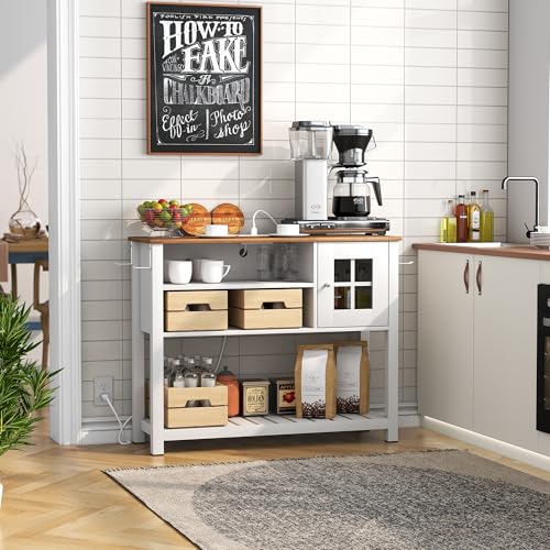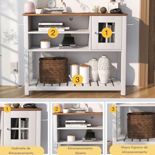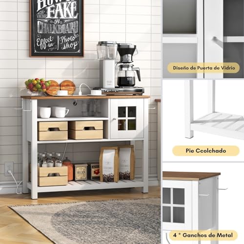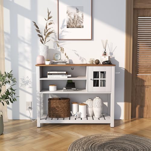 GOMYHOME - خزانة تخزين مع منفذ تخزين لاثاث البوفيه متعددة الاغراض لغرفة المعيشة والمطبخ والشرفة من جومي هوم (ابيض)