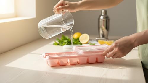 Gondol - قالب مكعبات ثلج كول اند تايت غير مقاوم للالتصاق مع غطاء من جوندول، وردي