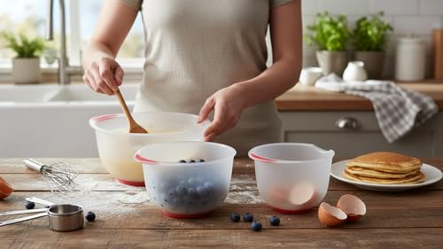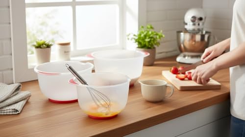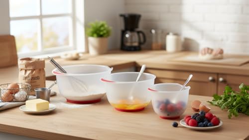 Gondol - بولات خلط ثلاثية (3 مقاسات) بقاعدة مضادة للانزلاق ومقبض ناعم الملمس (1.50 + 2.00 + 2.50 لتر) من جوندول، لون أبيض