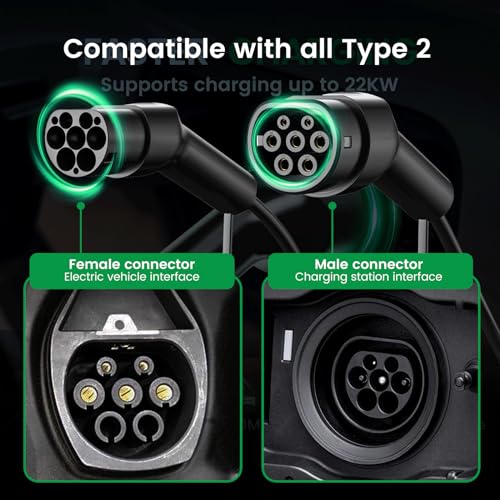 - شراء بدون قلق: IEC 62196، مقاوم للماء (IP54) ومع كابل بولي يوريثين حراري عالي الجودة لمقاومة التآكل والانحناء. تم اختباره 10000 مرة لوصلات التوصيل، بسعة تحميل تصل إلى 2 طن واجتاز اختبار السقوط بنجاح من ارتفاع 1 متر لتجنب مخاطر السلامة