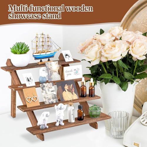 - 【 متعدد الوظائف】 حامل العرض الخشبي المكون من 4 طبقات مثالي للمعارض الحرفية وعرض الكب كيك والمجوهرات ومستحضرات التجميل والشموع وما إلى ذلك. سواء في المناسبات الخاصة أو في الحياة اليومية، فهي أداة تخزين ممتازة لسطح المكتب.