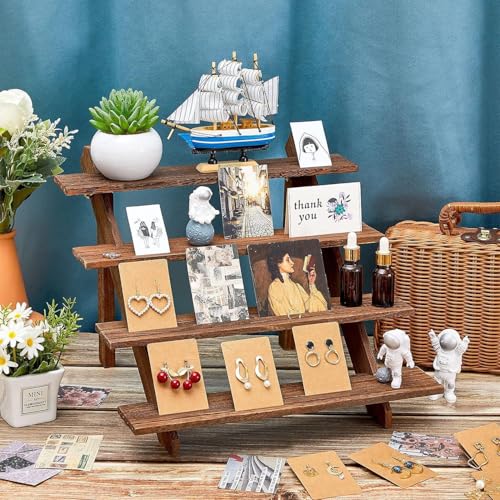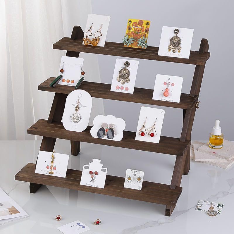 Gonice - حامل عرض خشبي من 4 طبقات من جونيس، حامل عرض أقراط من خشب الجوز المتدرج، حامل كب كيك، حامل عرض البضائع على سطح الطاولة للبيع