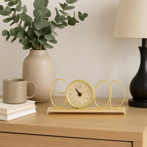 Generic - ساعة ديكور مكتب جيدة - قاعدة خشبية وهيكل معدني مطلي بالذهب - تصميم انيق للمكتب وغرف المعيشة - ديكور فريد وهدية