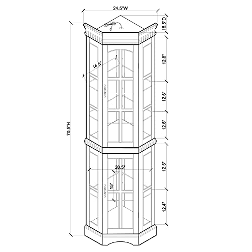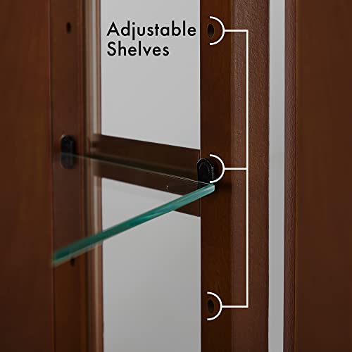 - مزود بإضاءة: يحتوي دولاب التحف ذو الباب الزجاجي على مساحة لإضاءة بلمبة 25 وات (غير متضمنة) في الأعلى. يوجد سلك مع مفتاح تشغيل/إيقاف حتى تتمكن من استخدام الإضاءة بسهولة عندما ترغب في ذلك.