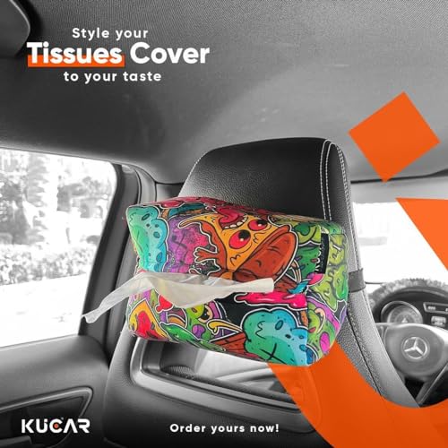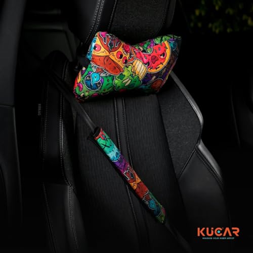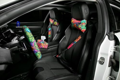 Generic - طقم سيارة مكون من وسادة رقبة السيارة وغطاء مناديل ورقية وغطاء عجلة القيادة وغطاء حزام الأمان للسيارة من جود فايبس، 6 قطع