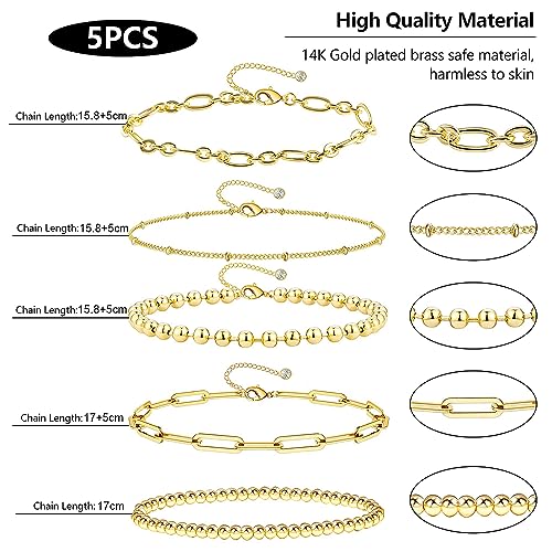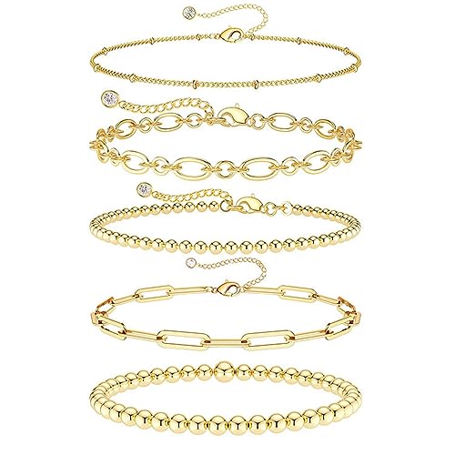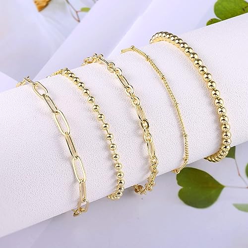 Goodern - مجموعة أساور متعددة الطبقات مطلية بالذهب عيار 14 قيراط، أساور كلاسيكية أنيقة بطبقات قابلة للتعديل للنساء والفتيات، مجموعة أساور بحلقات ذهبية أنيقة بنمط بوهو من جودرن