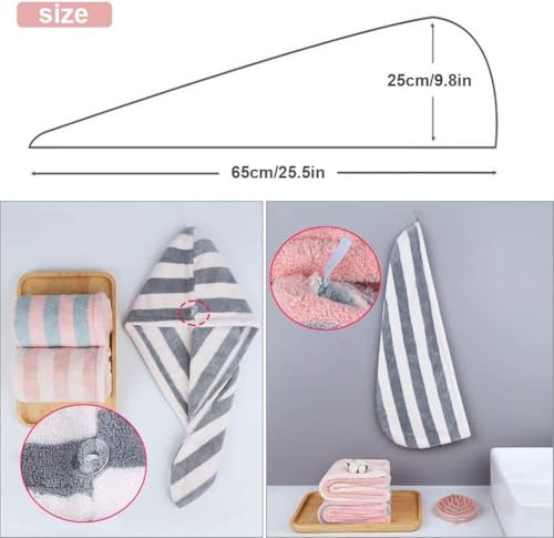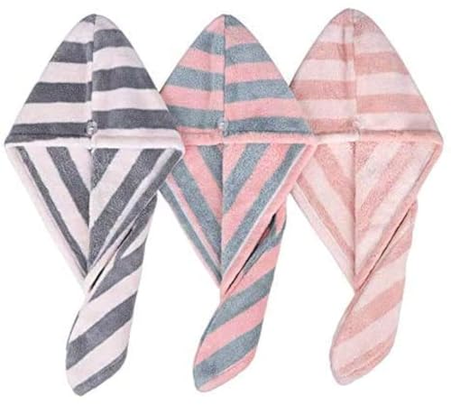 Goodern - فوطة تربون فائقة الامتصاص وسريعة الجفاف من الصوف المرجاني والمايكروفايبر مع زر وكاب لتجفيف الشعر الطويل والمجعد لتترك املس بدون تطاير جوديرن 3 قطع متعدد الألوان غوودرن مقاس واحد