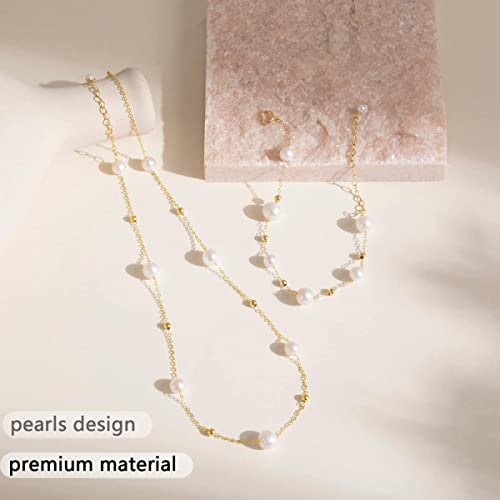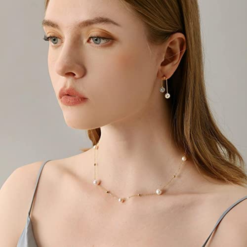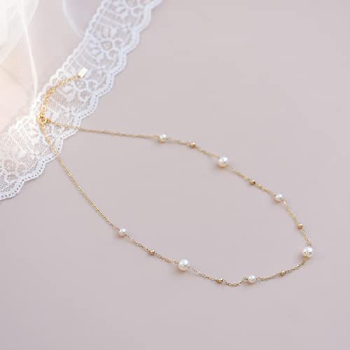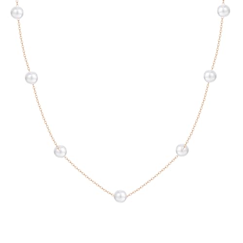 Goodern - غوودرن قلادة نسائية عصرية بسيطة من اللؤلؤ سلسلة الترقوة قابلة للتعديل للبنات من اللؤلؤ، لا تبهت ومريحة في الارتداء، قلادة صغيرة رقيقة للسيدات، هدايا مجوهرات يومية