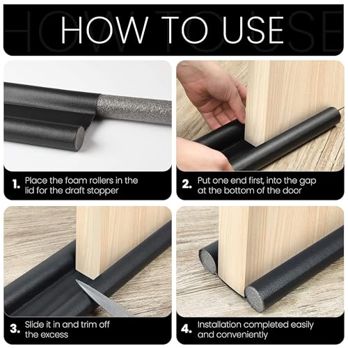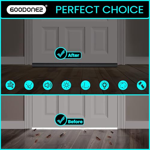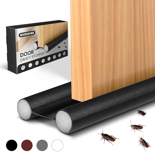 GOODONE2 - شريط عازل أسفل الباب بطول 94 سم من جودون2، شريط عازل للباب، شريط مانع لتسرب الهواء والأتربة، حاجب للضوضاء، لاصق قوي، حاجب لتيارات الهواء من النوافذ، شرائط قابلة للتعديل أسفل الباب (لون أسود)