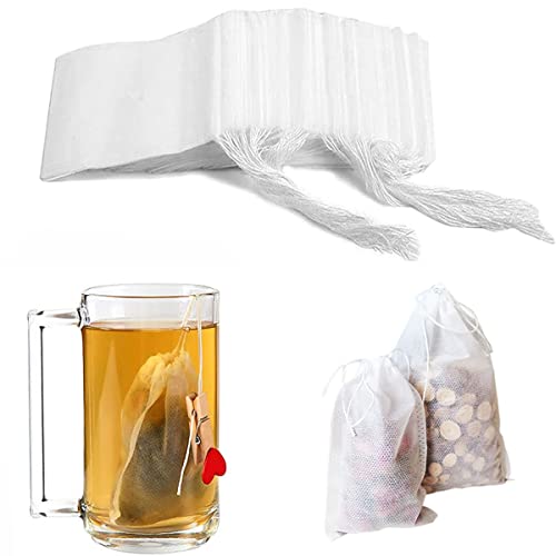 Generic - اكياس فلتر الشاي للاستعمال مرة واحدة برباط سحب للشاي السائب والقهوة والتوابل والاعشاب وشاي الزهور وشاي الاعشاب تعده بنفسك (7.9 سم × 2)، 200 كيس
