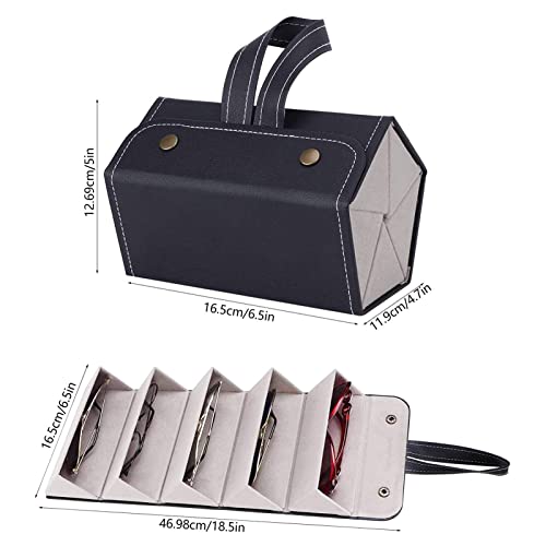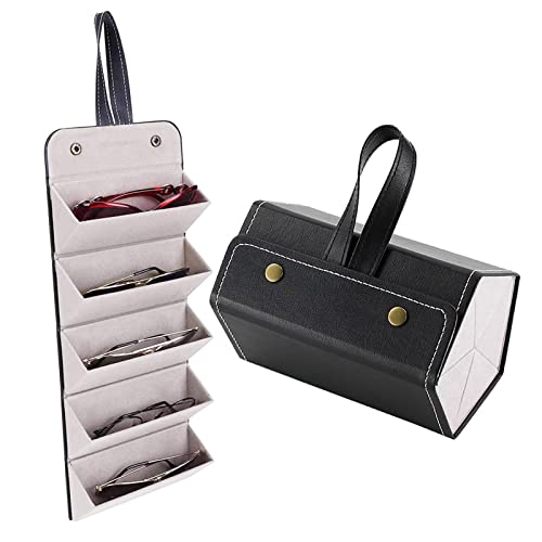 GOOLI - منظم نظارات شمسية للسفر بـ5 فتحات من جولي - حافظة سفرية للعديد من النظارات الشمسية، حاملة نظارات محمولة بـ5 فتحات للرجال والنساء، حافظة تخزين