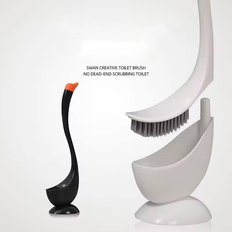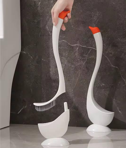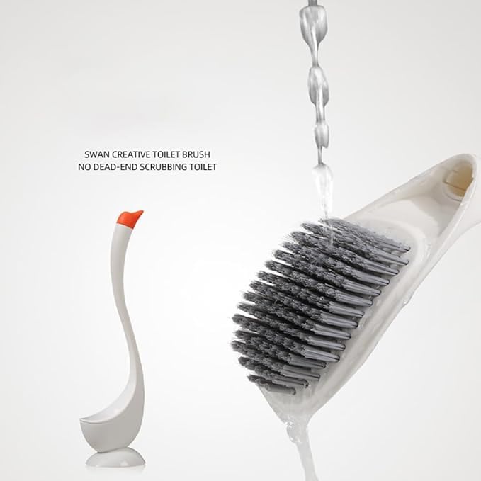 Generic - فرشاة تواليت على شكل إوزة برقبة طويلة لسهولة التنظيف وشعيرات صلبة متينة ومريحة وخفيفة الوزن وتناسب كل مقاسات التواليت والحمام، أبيض