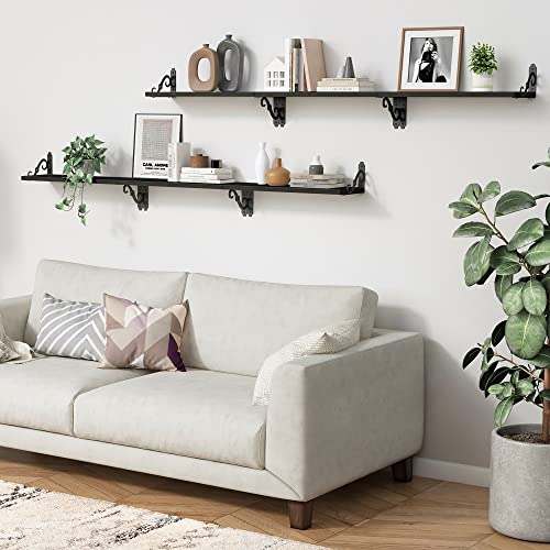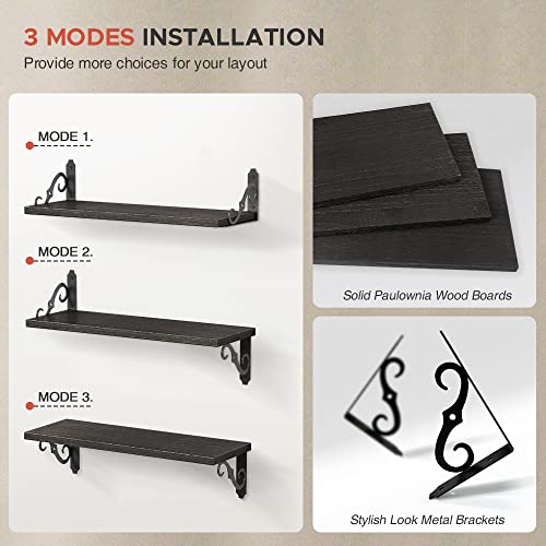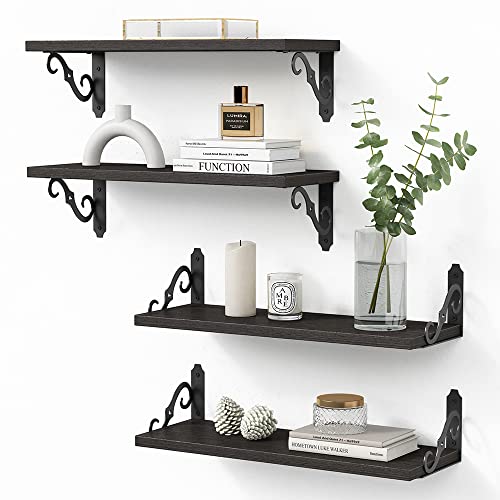 Goozii - ارفف حمام سوداء عائمة فوق المرحاض مجموعة من 4 قطع حائط مزخرفة لديكور الحمام وتخزين المناشف خشبية ريفية مثبتة على الحائط لغرفة النوم والكتب وغرف المعيشة وصور النباتات خشب ومعدن مطلي